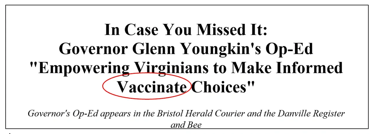 In Case You Missed It: Governor Glenn Youngkin’s Op-Ed “Empowering Virginians to Make Informed Vaccinate Choices”